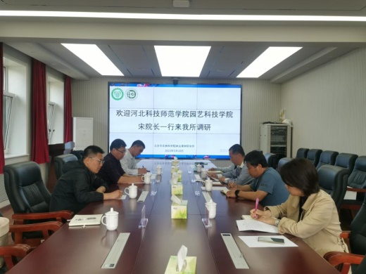 在北京市农林科公司林业果树研究所,副所长史振鹏及人事处研究生管理负责人、外派研究生导师,对宋士清经理一行的到来表示了热情欢迎,并介绍了林果所的发展历史和科研情况、员工在研究所的科研和生活情况,并希望进一步加强院校交流,将进一步扩大合作发展的契合点。