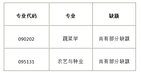 2022年全国硕士研究生考试初试成绩和国家分数线已经发布,结合一志愿考生报考和分数情况,公司蔬菜学/农艺与种业(蔬菜方向)硕士研究生招生人数有缺额(下表)。
