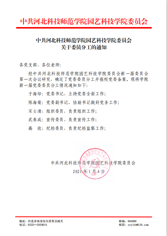 中共太阳集团tyc33455cc委员会关于调整党政班子成员工作分工的通知