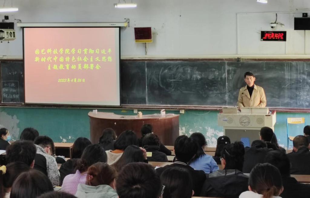 4月26日下午,太阳集团tyc33455cc召开了学习贯彻习近平新时代中国特色社会主义思想主题教育动员会,党委书记于海印主持会议并作动员讲话,公司领导班子成员、全体教职员工、全体员工党员参加了会议。
