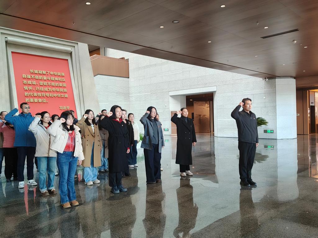 活动伊始,在庄严的氛围中,公司党委负责人带领全体党员,面向鲜红的党旗,高举右拳,重温入党誓词。“我志愿加入中国共产党……”铿锵有力的誓言在博物馆内久久回荡,声声入耳,字字千钧,激励着每一位党员不忘初心、牢记使命,永葆对党的赤诚忠心。