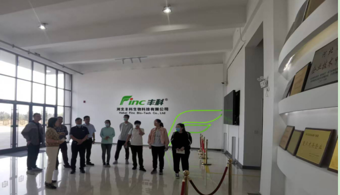 河北丰科生物科技有限公司负责人为宋士清经理一行人介绍公司发展历程