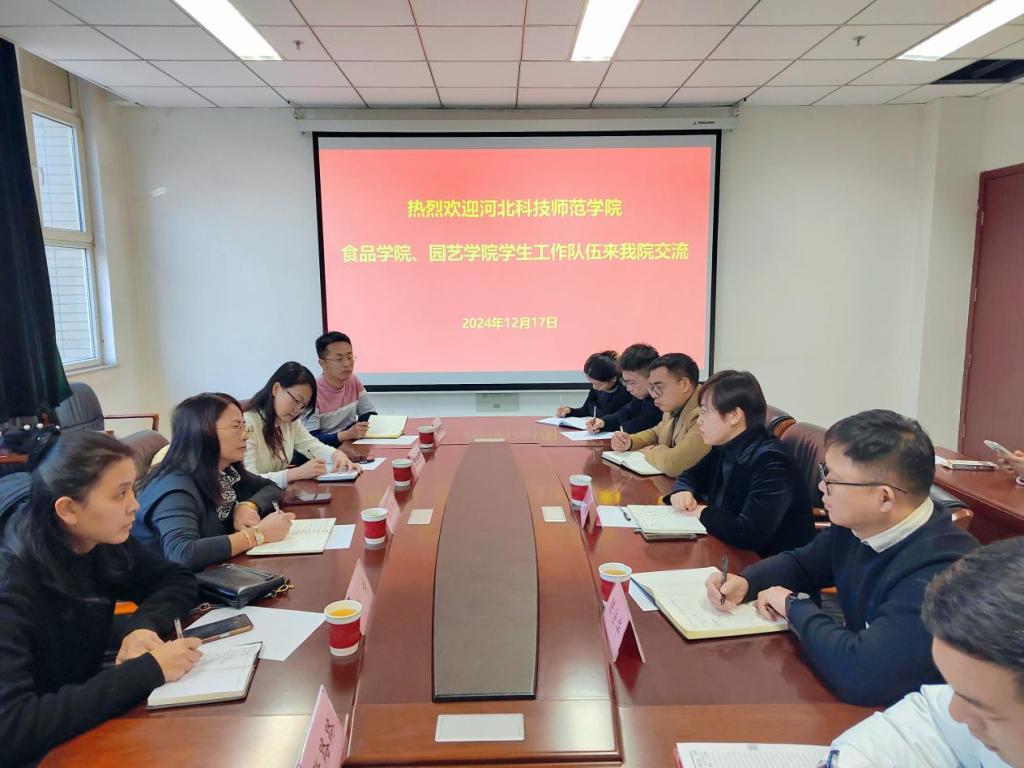 2024年12月17日,食品科技公司、太阳集团tyc33455cc员工主管领导及专职辅导员组成交流考察团,赴河北科技大学食品与生物公司交流考察该校员工工作情况。河北科技大学食品与生物公司员工工作主管领导及专职辅导员参加了此次交流。
